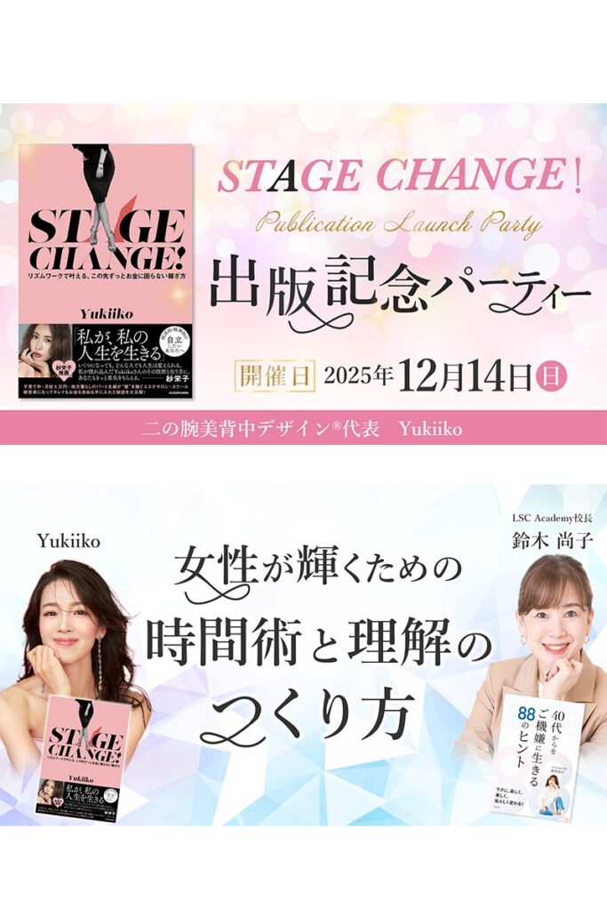【デザイン概要】書籍出版をフックにした「記念イベント告知」ビジュアル。ピンク×ゴールドの華やかなトーンでお祝い感・特別感を演出し、背景はボケ感のある光で上質さをプラスしました。流し見されても一瞬で要点が伝わる構成にしました。
